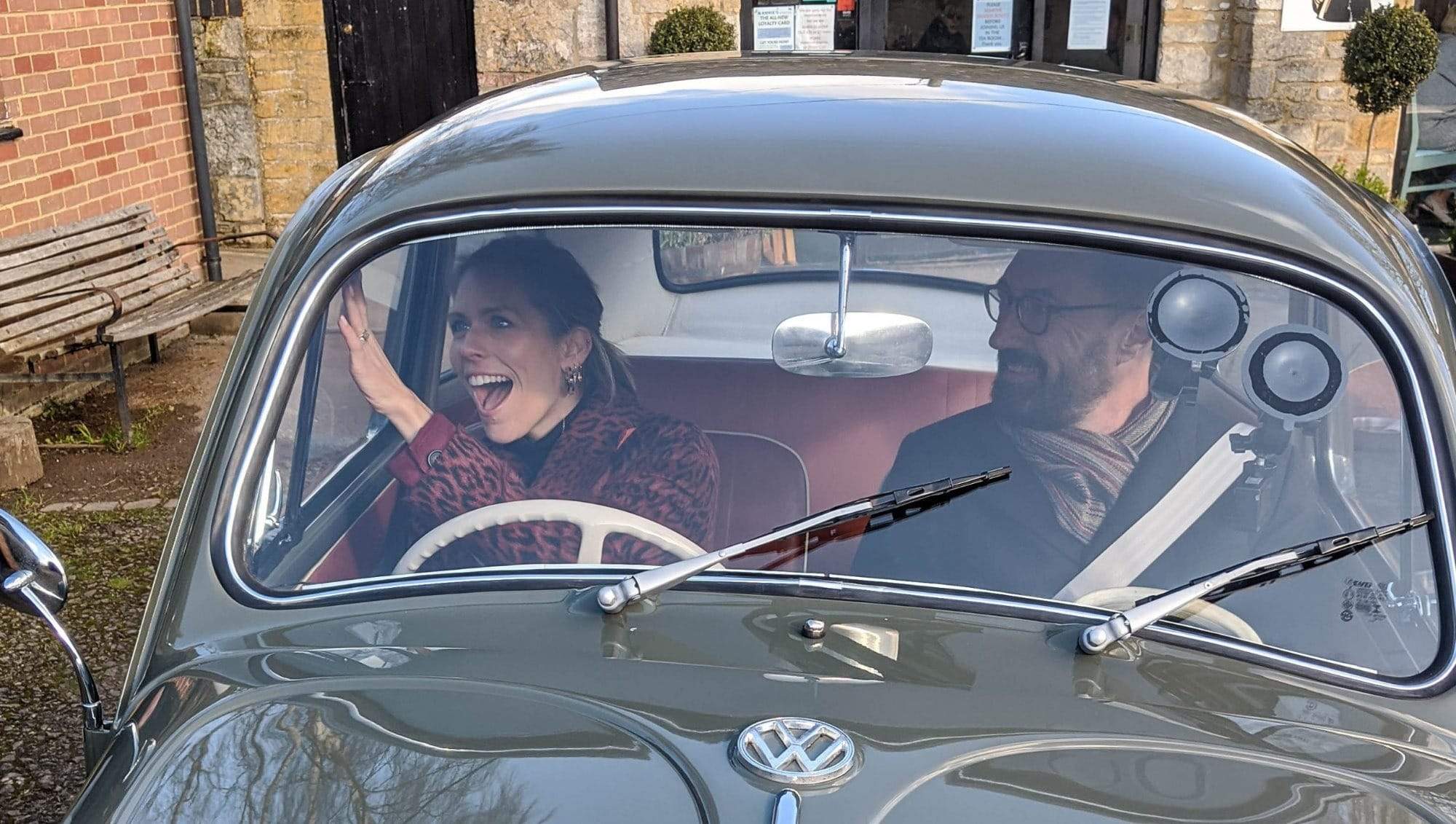 There were two stars on parade in Oxfordshire on Tuesday – Nicki Shields and our very own Bertie the electric VW Beetle – as the final stages of storm Ciara chased us through the beautiful canal-side village of Thrupp, just a mile from Electrogenic’s centre of operations in Kidlington. Nicki was the consummate professional, and so nice! And Bertie shone, as usual…Nicki came to do a test drive for The Sunday Times. You can read the full article here. And it was a first for Nicki: the first time she has driven an electric classic car made in 1963!
